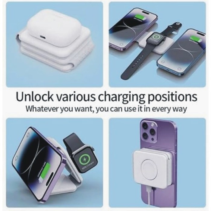 15w Magnetic Foldable Wireless Charger Compatible With Iphone 15 14 13 12 / airpods / Apple Watch
