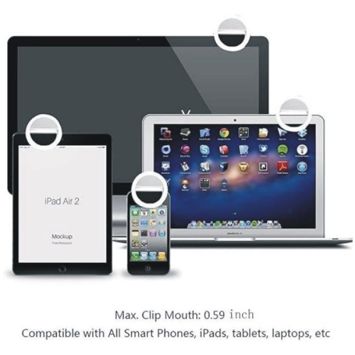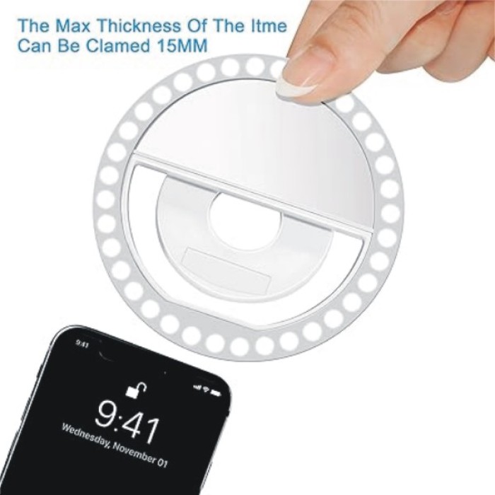LED Rechargeable Clip-on Selfie Ring Light for iPhone – Android (White)