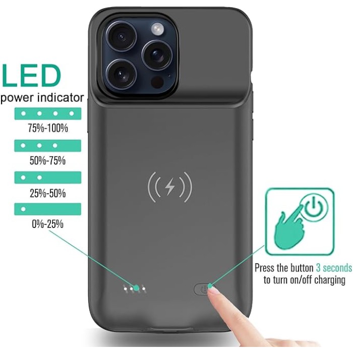 Compatibility: Our 10000mAh Qi wireless charging compatible extended battery case is designed specifically for the iPhone 15 Pro Max 6.7 inch, offering a massive power boost for your device. Please note that it is not compatible with iPhone 15, iPhone 15 Plus or iPhone 15 Pro.
