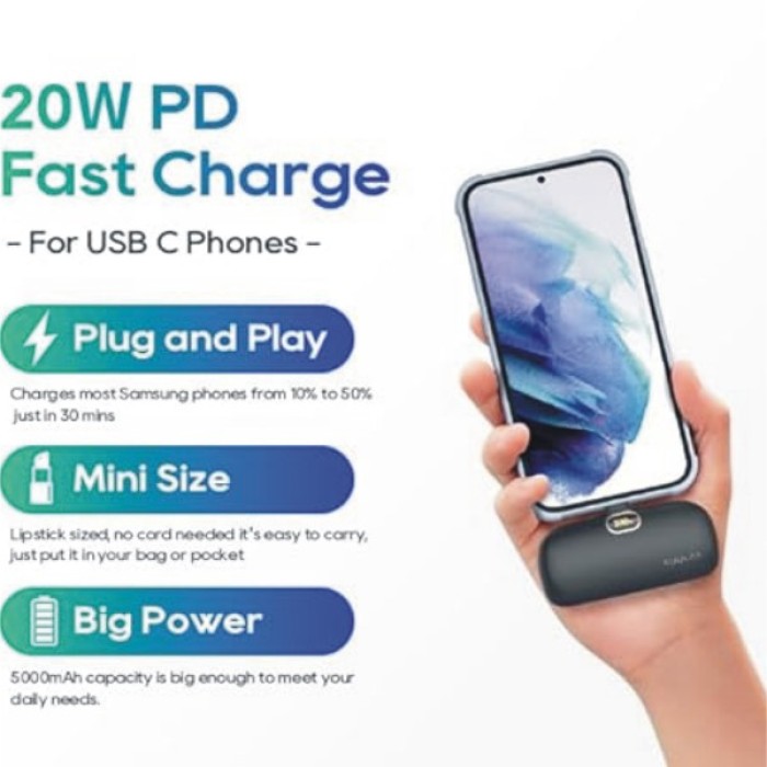 Portable Mini Charger, Power Bank With Type-C Connector 5000mA.H