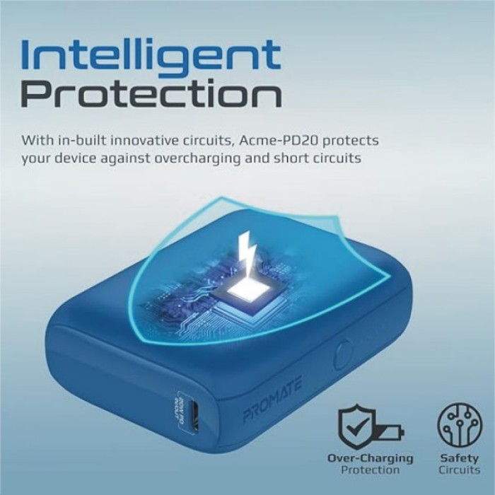 Promate USB-C Power Bank, Power Delivery Input / Output Port, QC 3.0 22.5W Port and Over-Heating Protection