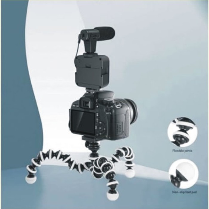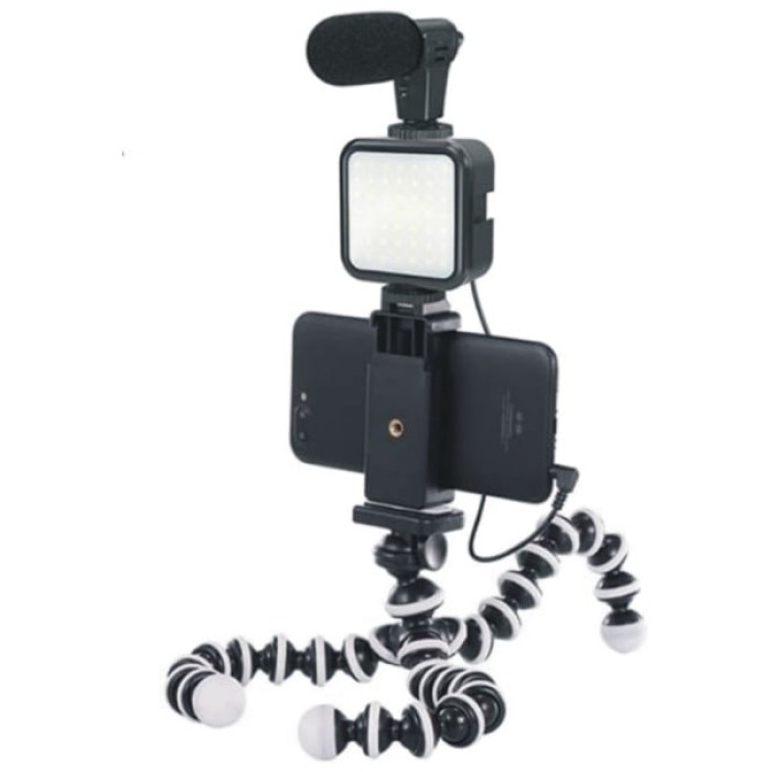 Vlogging Kit, LED Light, Shotgun Microphone, Phone Holder and Extendable Tripod Flexible Stand
