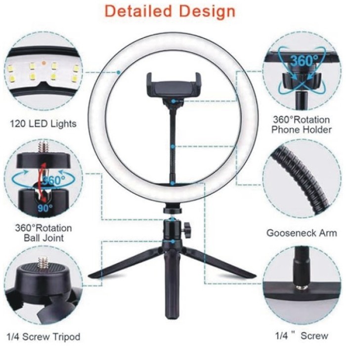 Capture perfect photos and videos with the 10-Inch Ring Light with Bracket. This versatile ring light comes with a mobile phone tripod, providing stable and professional lighting for all your photography, videography, and live streaming needs. Adjustable brightness and color temperature ensure optimal lighting in any setting. Ideal for content creators, vloggers, and beauty enthusiasts looking to enhance their setup with high-quality lighting.